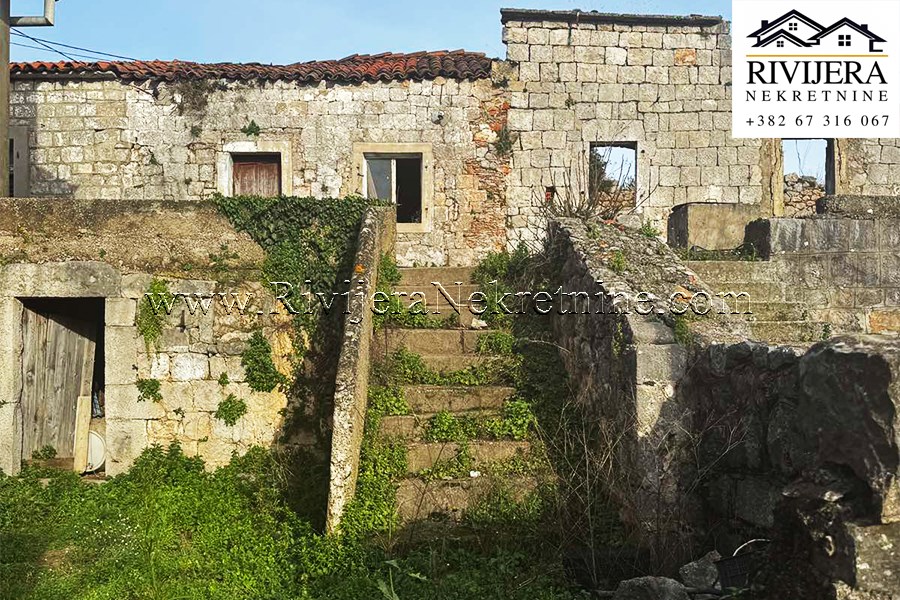 Prodaje se ruina površine 126m² na placu od 1170m², smještena na atraktivnoj lokaciji sa nesmetanim pogledom na more. Kuća čvrste gradnje sa pomoćnim prostorijama u prizemlju, uz mogućnost dogradnje i renoviranja prema originalnom stanju. Do parcele vodi put, a struja je već dovedena. U neposrednoj blizini nalazi se restoran Carević. Idealna prilika za investiciju ili izgradnju porodične kuće u mirnom okruženju.
